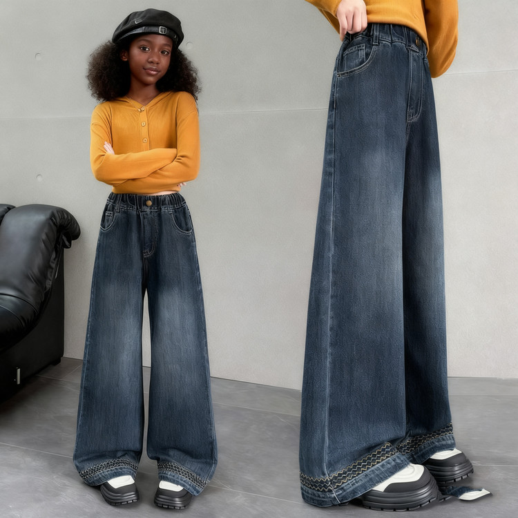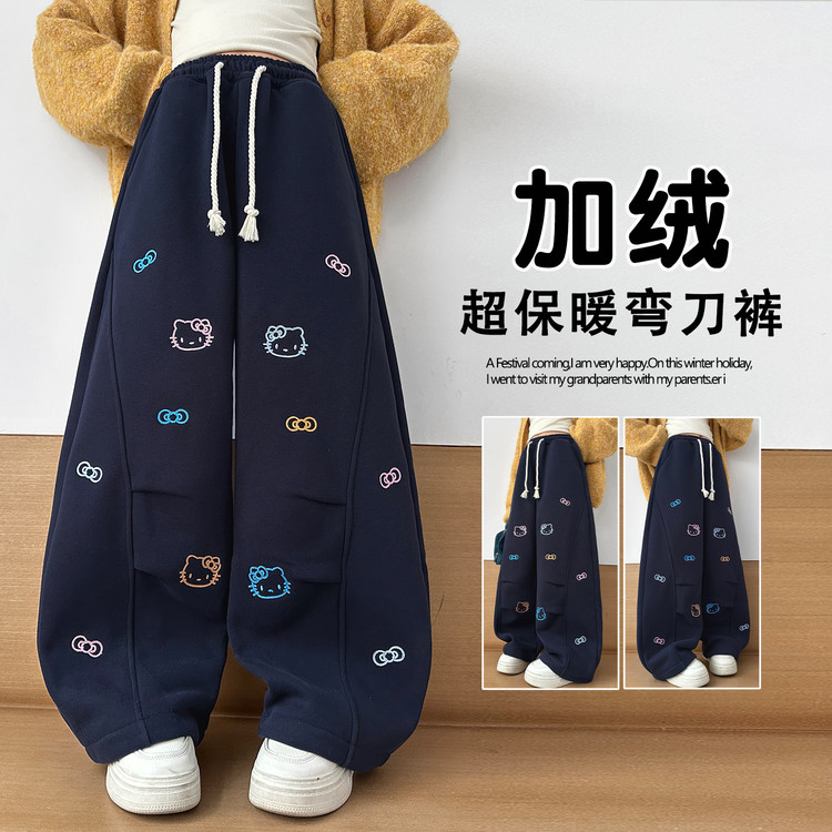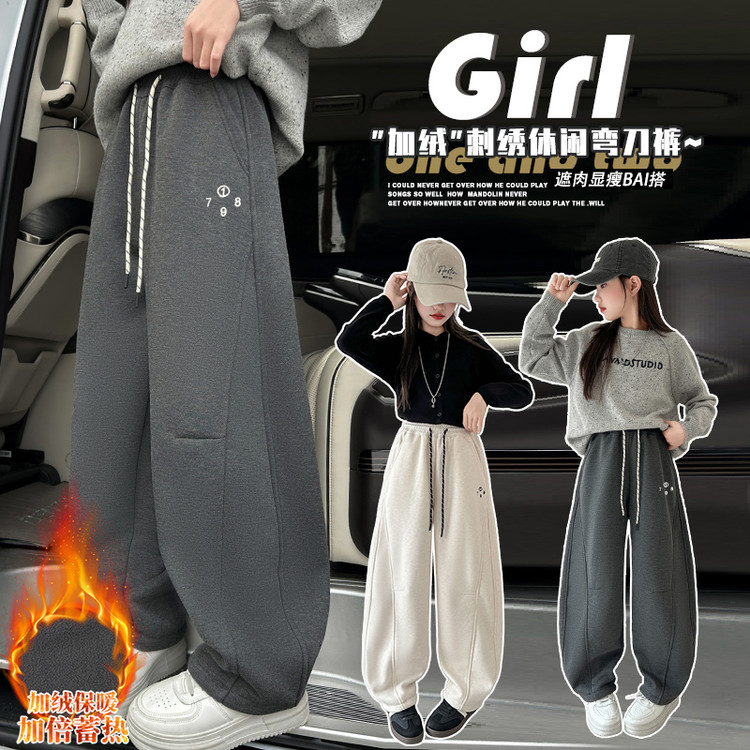 睿豆豆&25285糯米绒加绒加厚刺绣数字阔腿裤