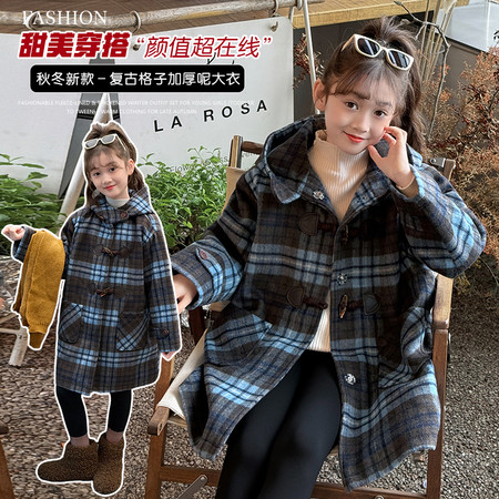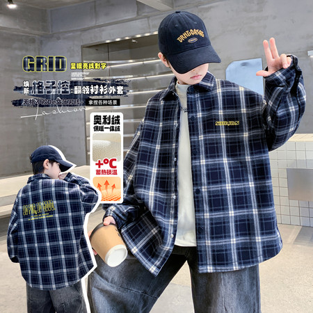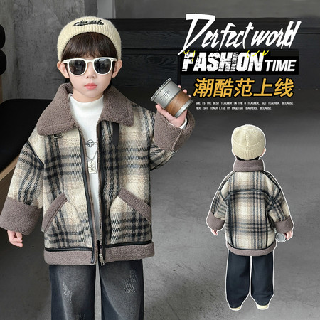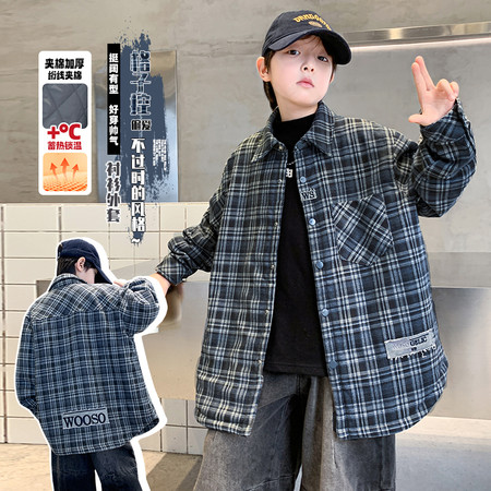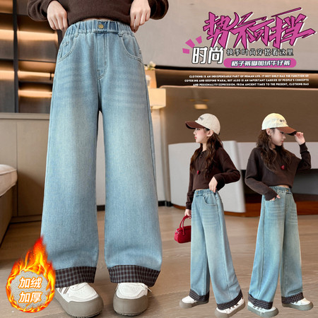 豪涵童装&冬款加绒脚口格子牛仔长裤2619