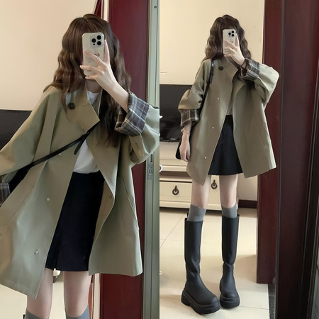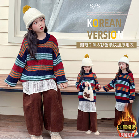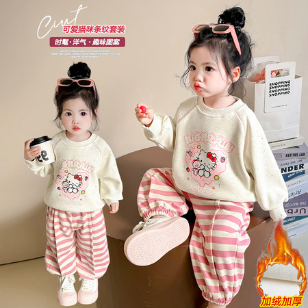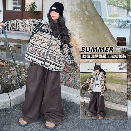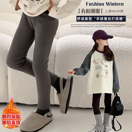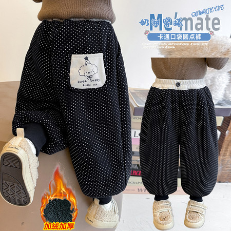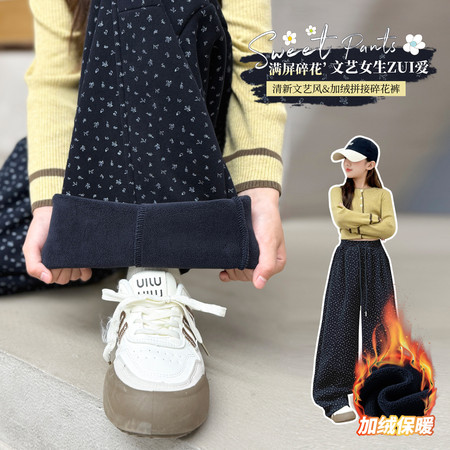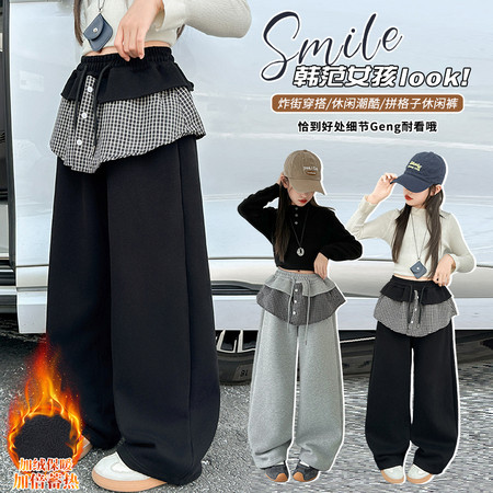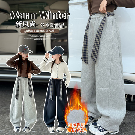 睿豆豆&25287加绒加厚拼格子休闲裤