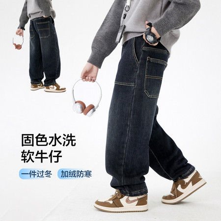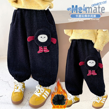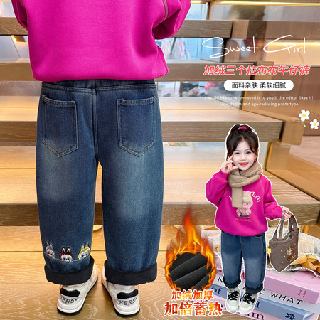 睿豆豆&25276工艺侧边卡线加绒牛仔裤