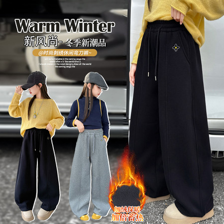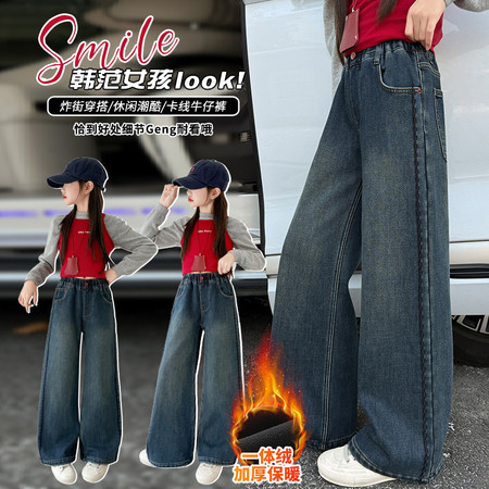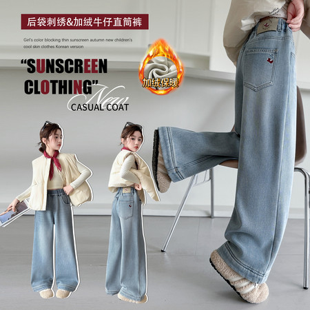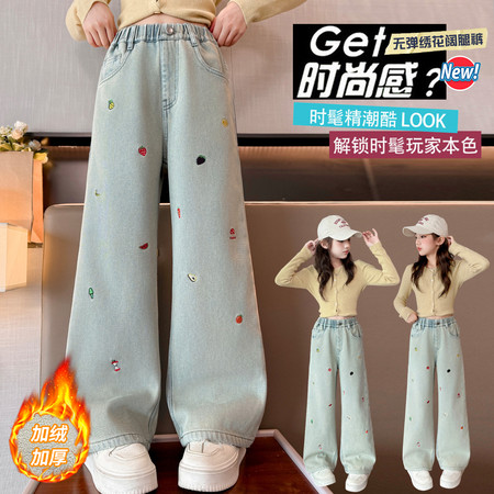 豪涵童装&冬款加绒前片绣花牛仔阔腿裤2618