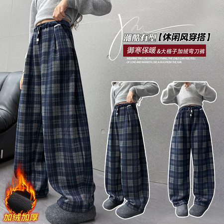 睿豆豆&25288加绒加厚屁帘格子休闲裤